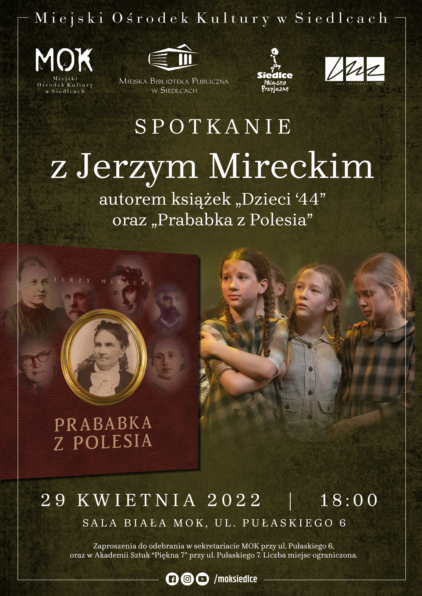 Miejski Ośrodek Kultury w Siedlcach zaprasza na spotkanie autorskie z Jerzym Mireckim i promocję jego nowej książki pt. „Prababka z Polesia” opowiadającej o wyjątkowych ludziach z rodziny autora. Spotkanie zaplanowano 29 kwietnia o 18:00 w Sali Białej.