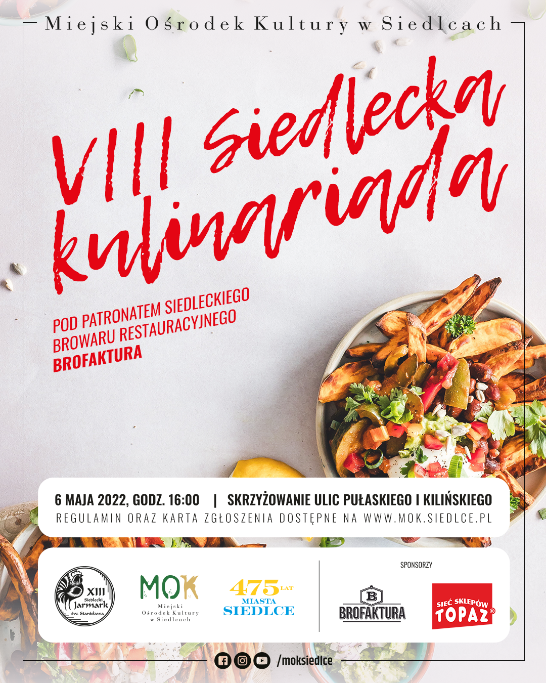 Kulinariada realizowana jest w dwóch kategoriach: dania główne i desery. Warunkiem udziału w konkursie jest wysłanie elektronicznej karty zgłoszenia (KLIK) do 4 maja 2022 r.