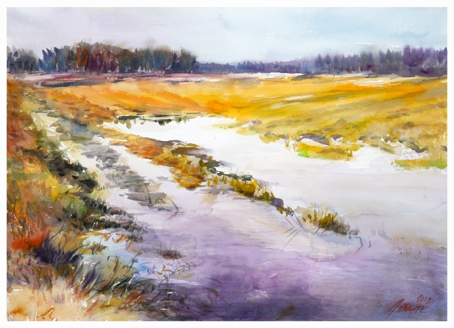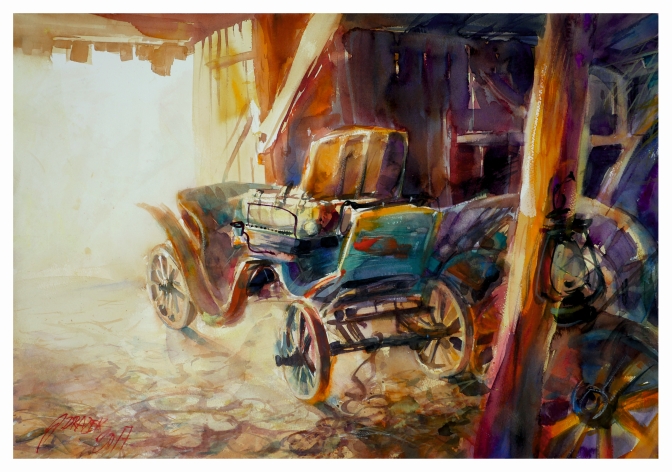 „Dzieła, które będzie można podziwiać zostały wykonane w technice wodnej jaką jest akwarela. Przedstawiają sceny związane z krajobrazem wiejskim i życiem poza miejskim zgiełkiem. Kompozycje często dynamiczne przyciągają wzrok różnorodnością barw i niesamowitym odtworzeniem rzeczywistości za pomocą plam rozwodnionego pigmentu.  Od kilkunastu lat akwarela jest główną  techniką, którą rozwija artysta. To jednak nie wszystko. W swoim portfolio Pan Jarosław może się pochwalić dziełami malowanymi również farbami olejnymi  jak i  wykonanymi  w technice linorytu. W trakcie wielu lat pracy twórczej wykonywał również malarstwo ścienne, głównie sztukę sakralną w tym polichromie. Maluje najczęściej  naturę, krajobraz wiejski lub miejski. Dzięki obcowaniu z naturą może odpocząć jednocześnie czerpiąc inspiracje do pracy.  Poprzez zdobyte wykształcenie na wydziałach artystycznych z powodzeniem tworzy ilustracje książkowe oraz grafikę komputerową 2D. Zajmuje się również fotografią. Uczestniczy  w plenerach i wystawach w kraju i za granicą. Należy do Stowarzyszenia Akwarelistów Polskich, gdzie sprawuje funkcję członka zarządu.