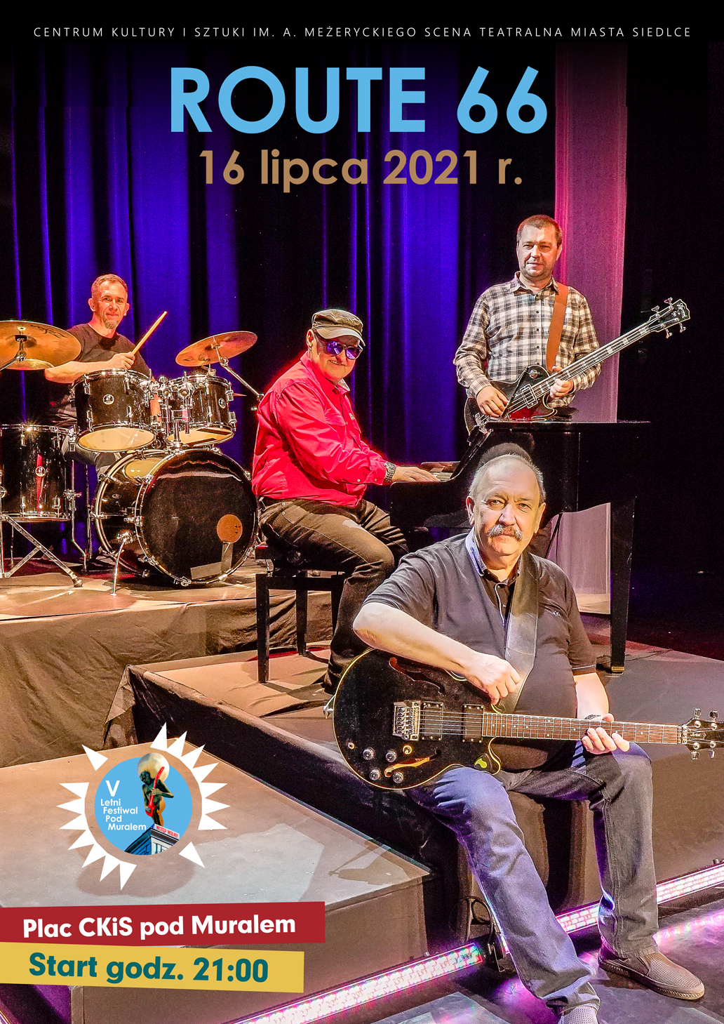 Zespół Route 66 powstał w 2010 r. Wielokrotnie występował m.in. na siedleckich Gitariadach, brał udział w Fali Bluesa, koncertował przy Fontannie. Ponadto prezentował się na scenie muzycznej w Łukowie, Łosicach i innych miejscowościach w regionie. Route 66 ma w swoim bogatym repertuarze muzykę rockową, głównie z lat 1970-1980 oraz bluesową. Podczas koncertu usłyszymy utwory z repertuaru Tadeusza Nalepy czy Rolling Stonesów m.in. "Modlitwę" i "Dbaj o miłość", "Satisfaction", "Bluesman" BB Kinga, "Sharp dressed man" ZZ TOP oraz kilka kompozycji Marka Somli: "Pająk kosmaty blues", "Rudowłosa", "Wędkarskie opowieści".
