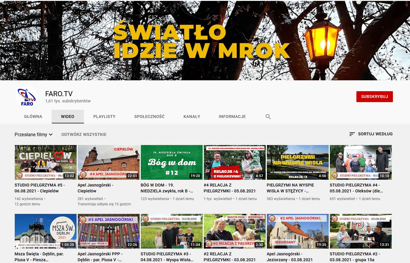 można śledzić na bieżąco nowe filmy z trasy - wywiady z pielgrzymami, Msze św., Apele Jasnogórskie.