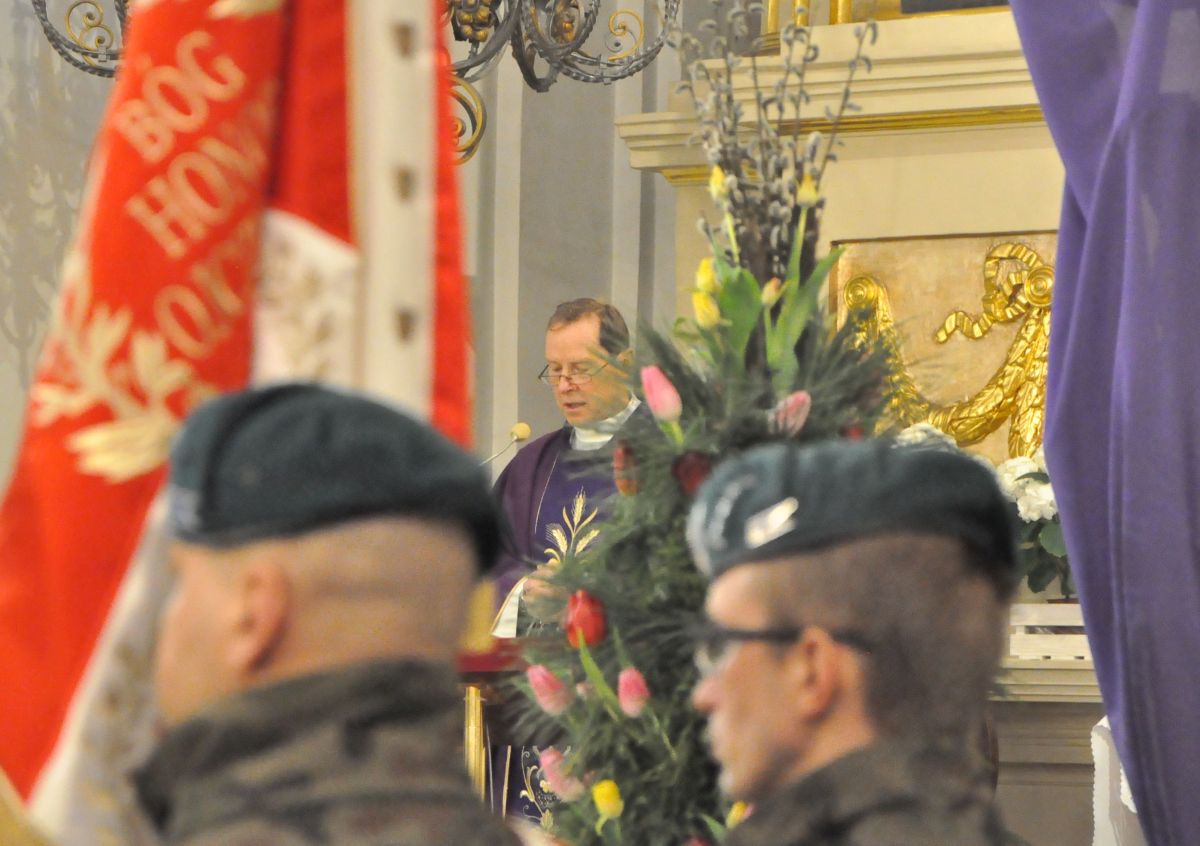 Przed uroczystością w kościele świętego Stanisława została odprawiona msza święta. Koncelebrze przewodniczył proboszcz parafii św. Stanisława, ks. Adam Patejuk. W homilii ks. Bogumił Lempkowski nawiązywał do ewangelii mówiącej o zdradzie Judasza. Mówił, że Polskę też wyceniono, przehandlowano i podzielono. Zwrócił też uwagę, że Katyń nie był wydarzeniem jednorazowym. Nastąpiła po nim cała fala zbrodni: już nie tak masowych, ale ciągnących się aż do 1989 roku. Ich ofiarom winni jesteśmy pamięć, a wyrwanej z niewoli Ojczyźnie – miłość, nawet gdy wymaga ona ofiary.