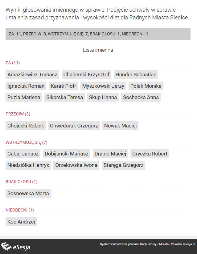 Uchwałę przegłosowano stosunkiem 11 za, 3 przeciw i 7 wstrzymujących się.