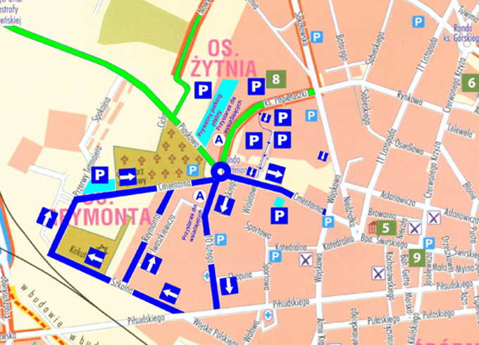 Bezpłatne miejsca parkingowe zlokalizowane będą przy ul. Cmentarnej oraz Przerwy-Tetmajera.