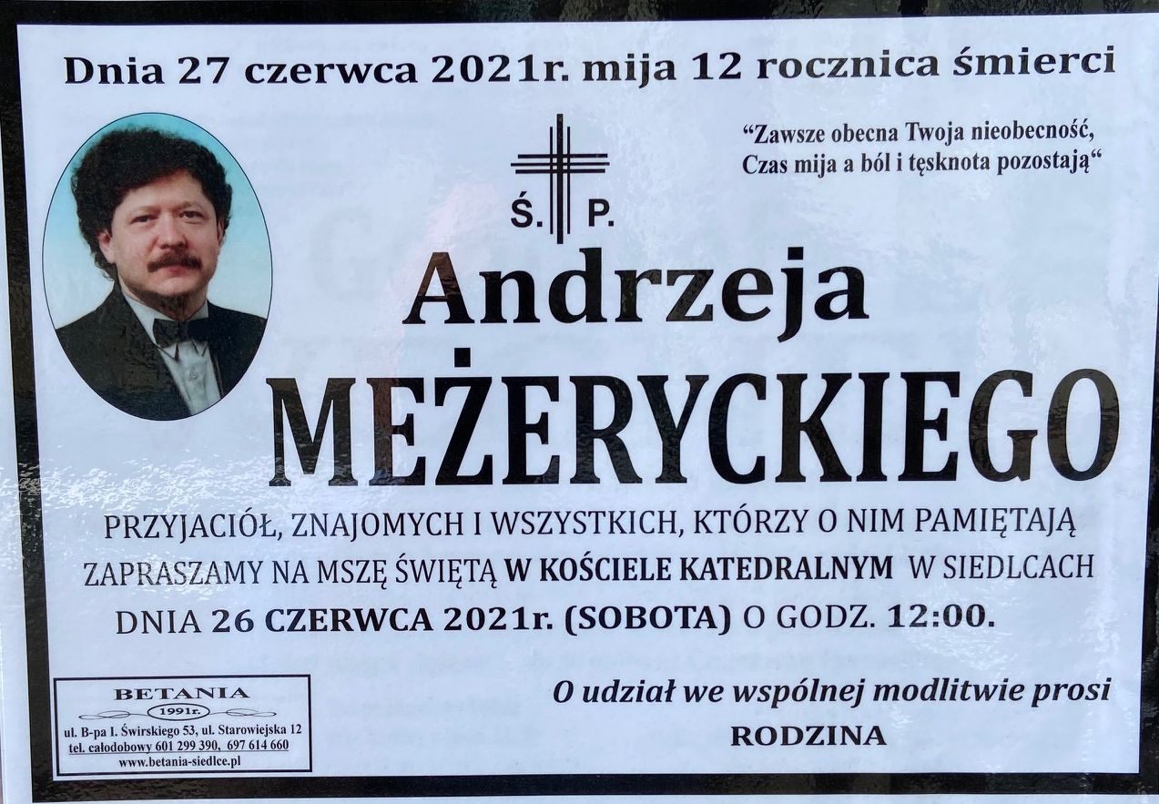 Andrzej Meżerycki zmarł 27 czerwca 2009 r. po długiej i ciężkiej chorobie.