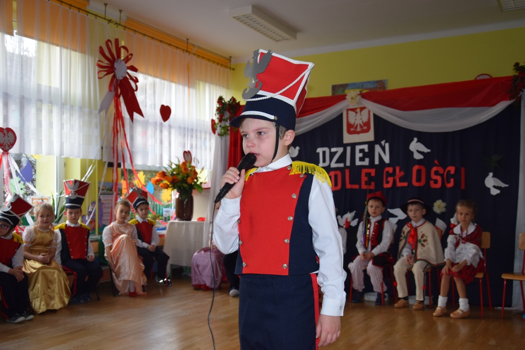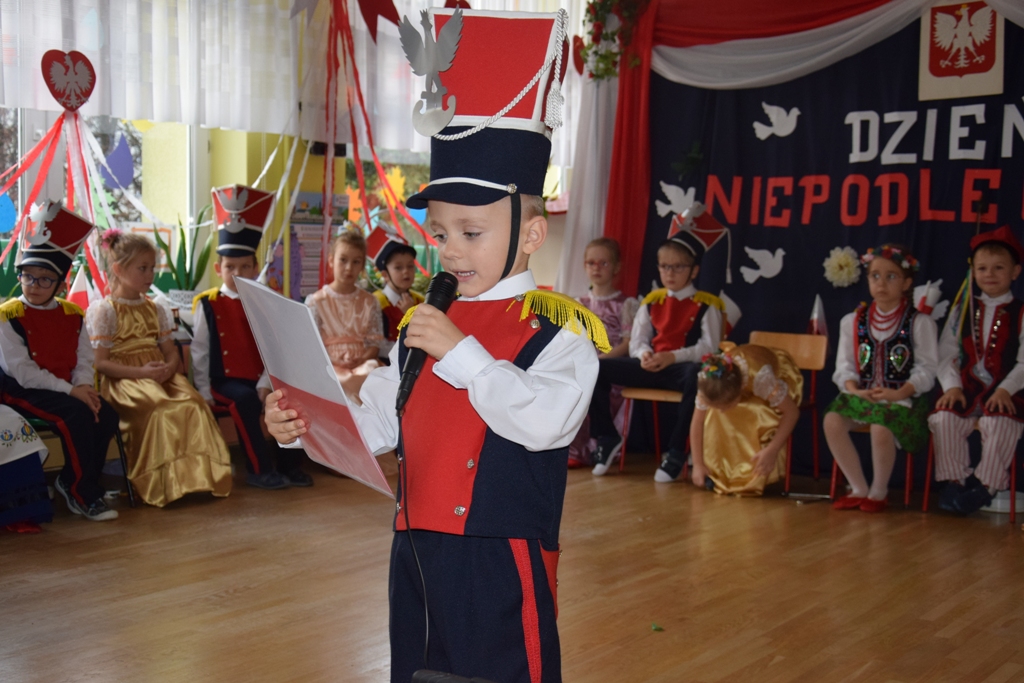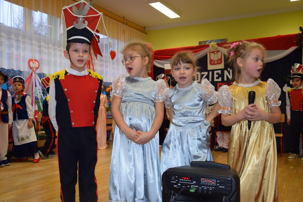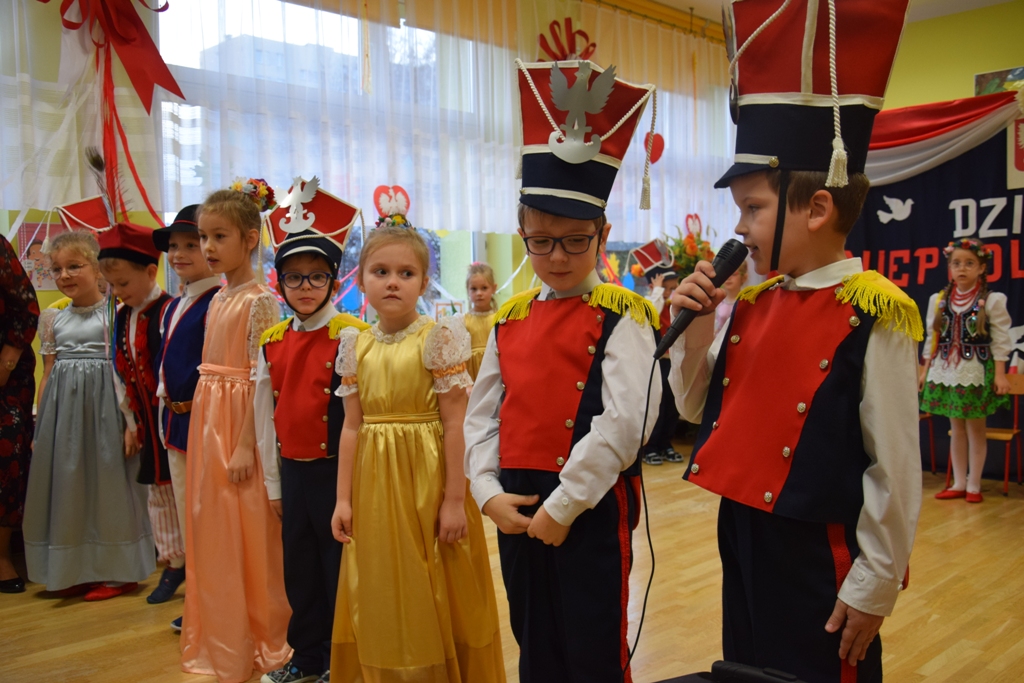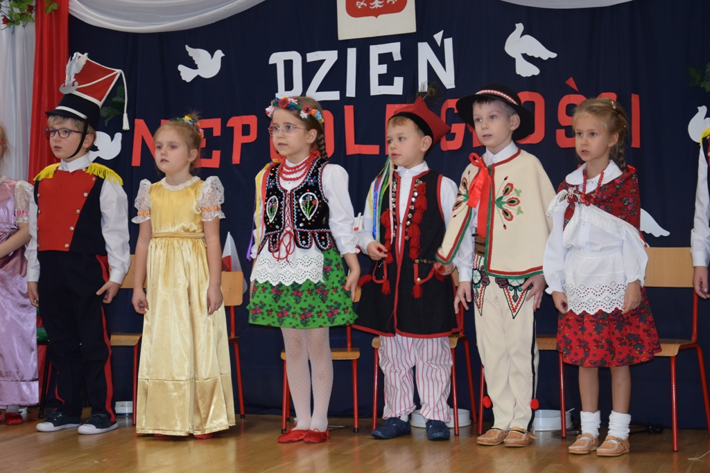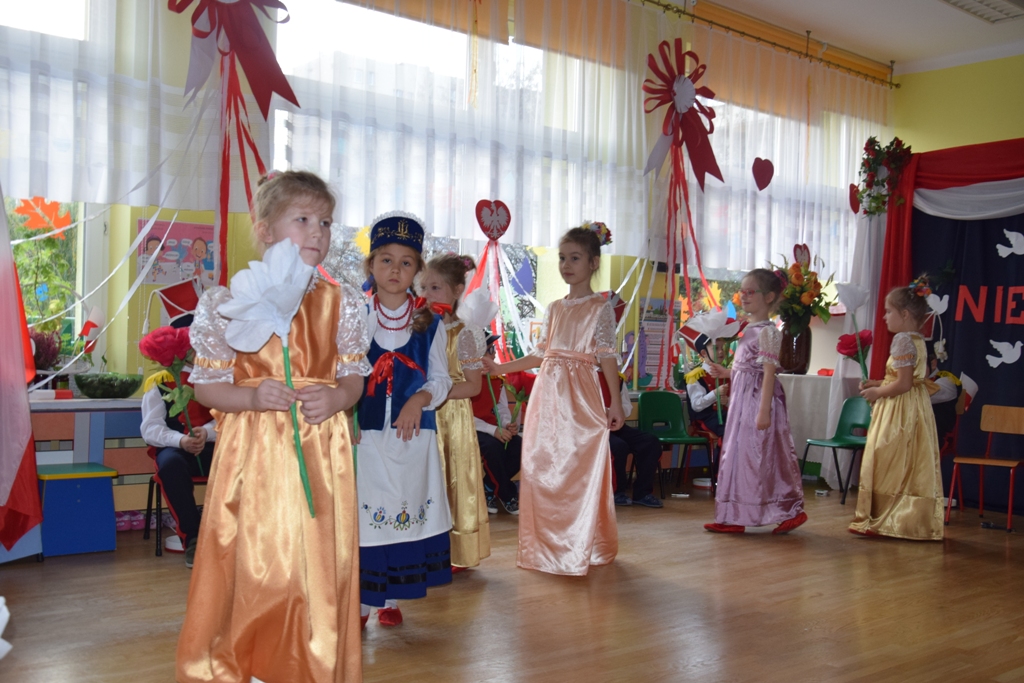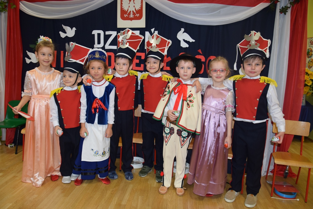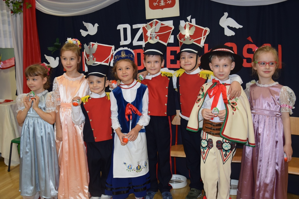 6-latki z zaangażowaniem i werwą prezentowały pieśni i wiersze przybliżające historię Polski. Na każdym kroku udowadniając swoje zdolności wokalne, recytatorskie i taneczne. Rodzice mieli okazję wysłuchać takich utworów jak „Jestem Polakiem”, „Przybyli Ułani pod okienko”, „Polska to mój dom”. Poszczególne prezentacje publiczność hojnie nagradzała brawami.