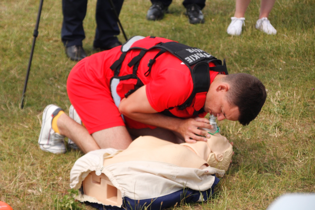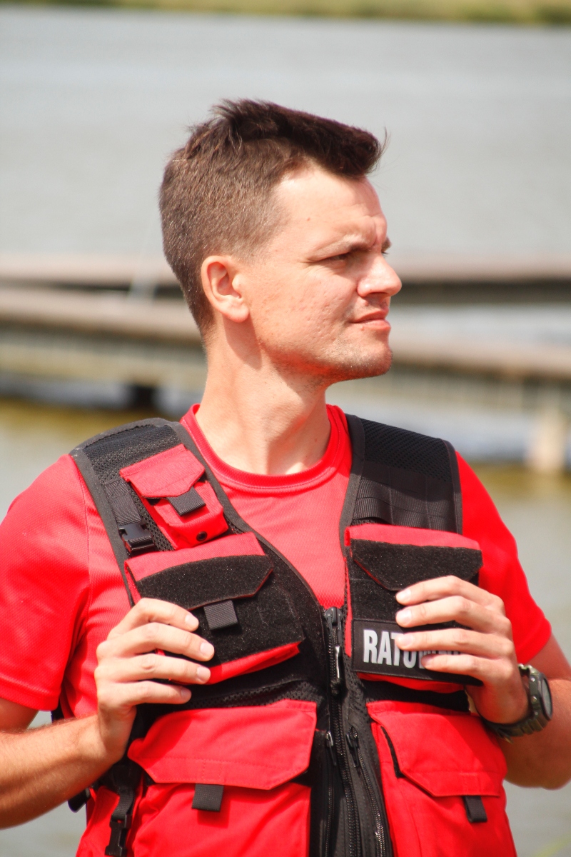 Zanim zaczniemy działać, powinniśmy najpierw zastanowić się, czy mamy odpowiednie możliwości – zarówno fizyczne, jak i sprzętowe. W przypadku rzek takich jak Wisła, absolutnie nie możemy rzucać się na pomoc bez sprzętu, który nas zabezpieczy. W przeciwnym razie sami możemy ucierpieć. Dlatego widząc tonącego najpierw dzwonimy pod nr tel. 112 i wzywamy odpowiednie służby. Natomiast jeśli jest większa grupa osób i możemy się w jakiś sposób zabezpieczyć, np. mamy jakąś linę, możemy próbować ratować tonącego. Najpierw odpowiednio zabezpieczamy się liną i przy asekuracji innych osób stojących na brzegu wchodzimy do wody. Mamy wtedy pewność, że jesteśmy w stanie bezpiecznie powrócić, bo wiemy, że ktoś nas ściągnie do brzegu.