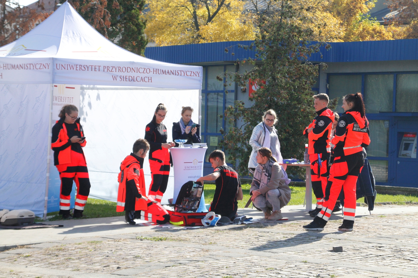 Wchodząc na teren placu przy poszczególnych stoiskach dostępne są darmowe badania słuchu, ciśnienia i wzroku, czy sprawności fizycznej. Studenci Uniwersytetu Przyrodniczo – Humanistycznego z kierunków ratownictwo medyczne i pielęgniarstwo uczą udzielania pierwszej pomocy przedmedycznej. Na chętnych krwiodawców czeka ambulans Polskiego Czerwonego Krzyża.