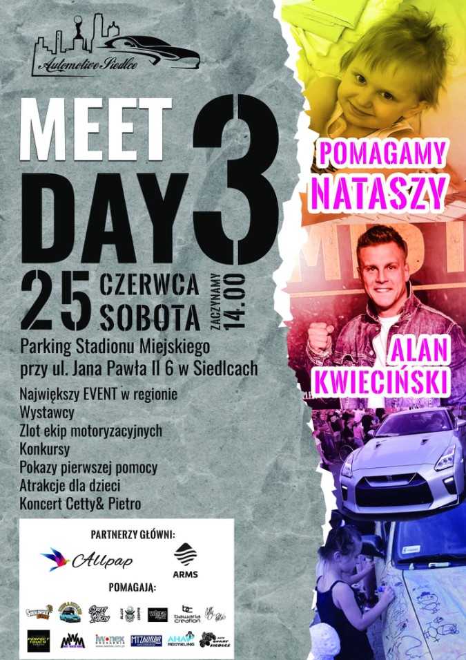 25 czerwca na parkingu Stadionu Miejskiego w Siedlcach odbędzie się III Automotive Meet Day Siedlce. Podczas motoryzacyjnego wydarzenia odbędzie się zbiórka pieniędzy na leczenie kilkuletniej Nataszy Żółkowskiej z Siedlec, która zmaga się z neuroblastomą IV stopnia.