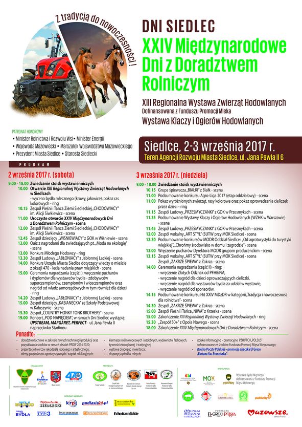 Organizatorem największych w regionie targów rolnych  jest Mazowiecki Ośrodek Doradztwa Rolniczego Oddział Siedlce. Równolegle odbędzie się XIII Regionalna Wystawa Zwierząt Hodowlanych.