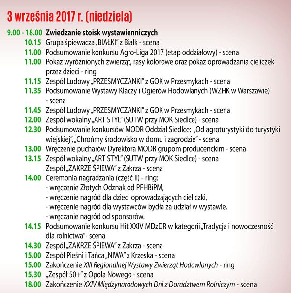 Międzynarodowe Dni z Doradztwem Rolniczym w Siedlcach /PROGRAM/