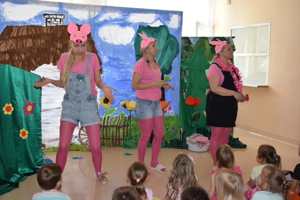 Miejskie Przedszkole nr 22 w Siedlcach gościło w piątek, 10 czerwca przedszkolaki z pobliskiego Miejskiego Przedszkola nr 26. Zaproszeni mali goście obejrzeli przedstawienie pt. „Trzy świnki” w wykonaniu nauczycielek: Karoliny Mieścickiej, Eweliny Patej, Magdaleny Ambroziak i Sylwii Batorskiej.