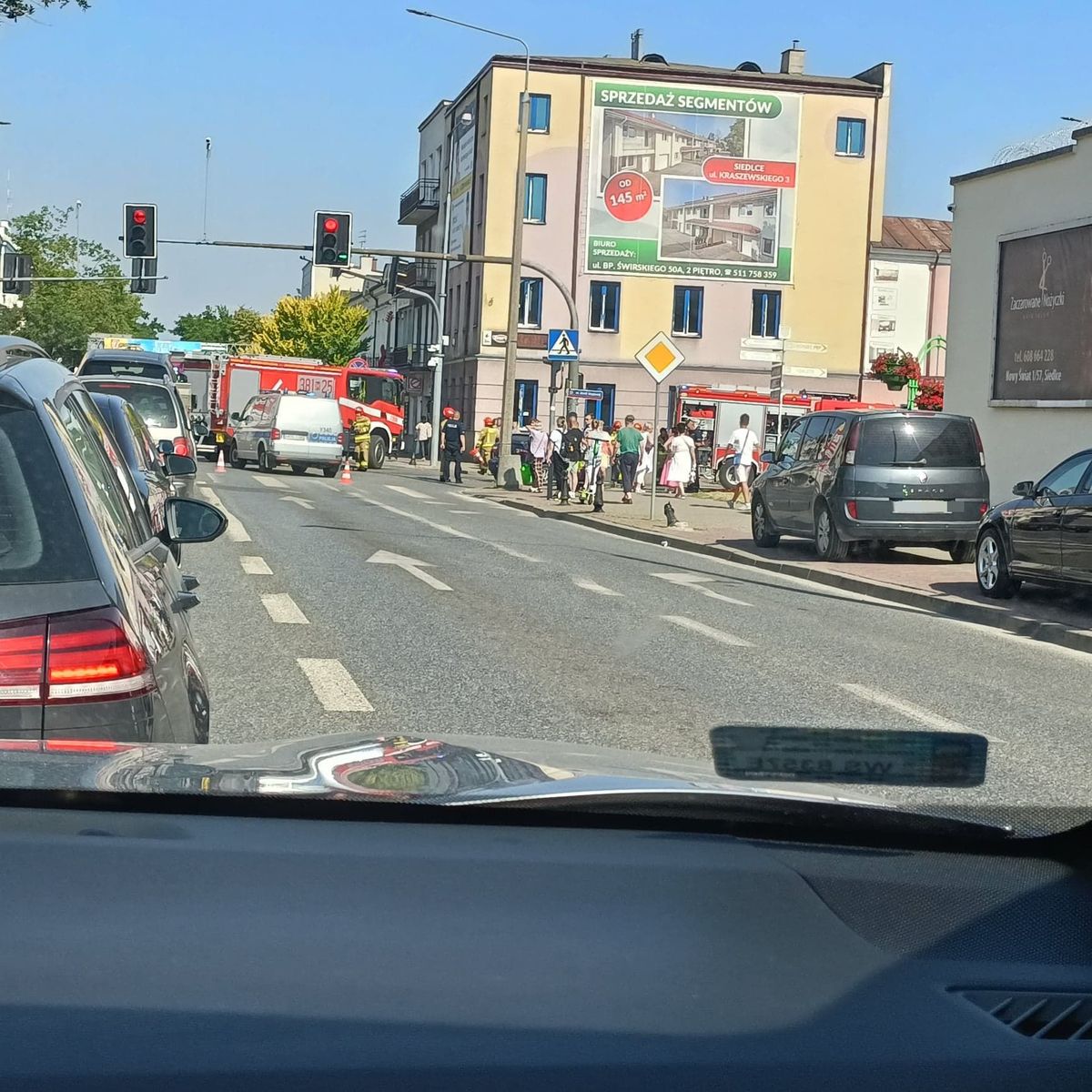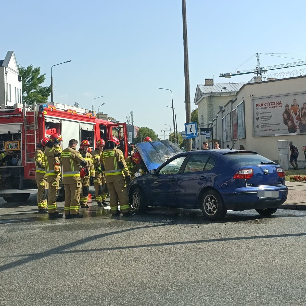 Uwaga kierowcy! Utrudnienia na głównym skrzyżowaniu w Siedlcach, doszło tam do pożaru auta.