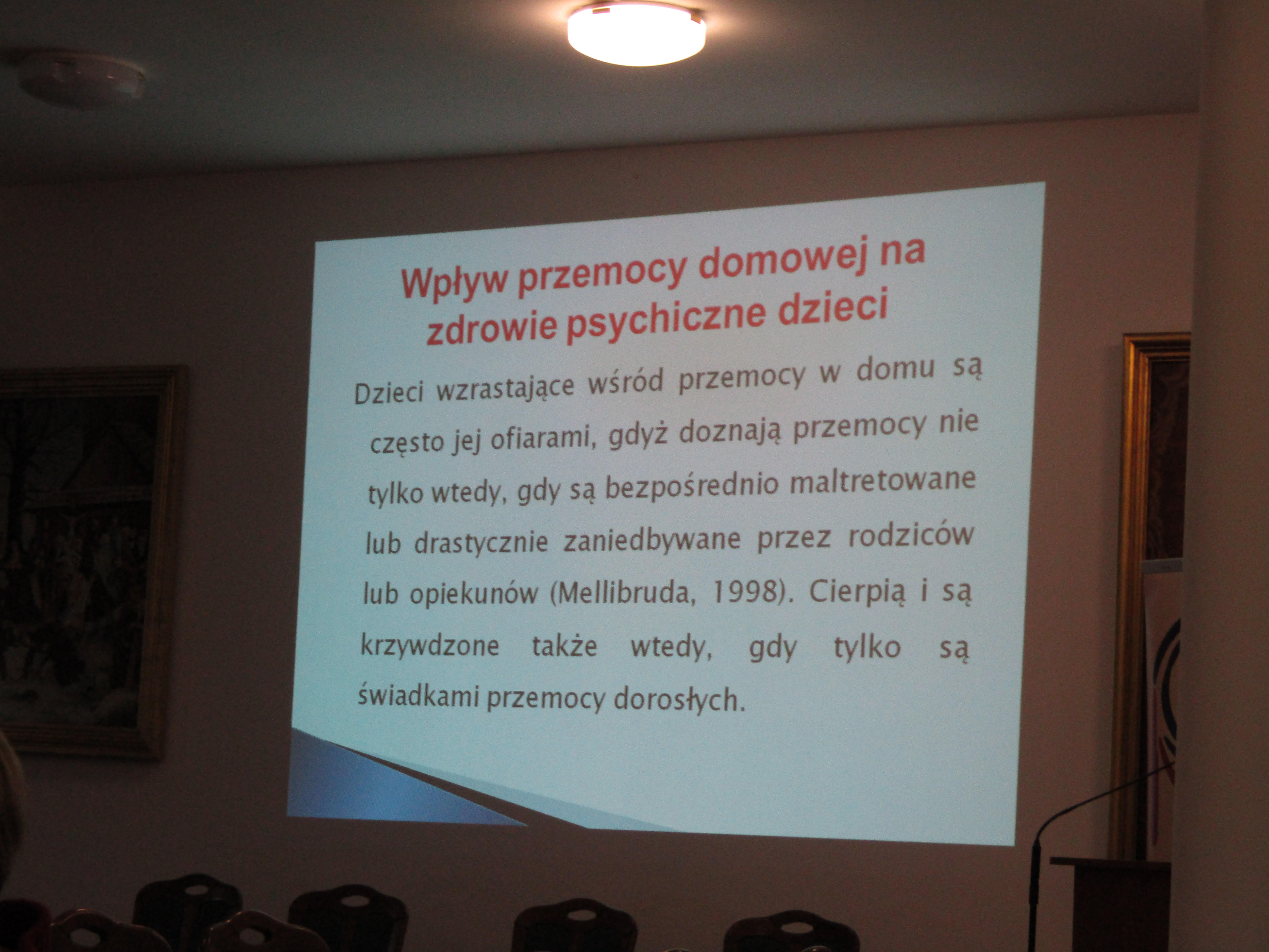 Psycholog Anna Laszuk-Laskowska w swoim wystąpieniu omówiła mechanizmy, które budują patologiczną relację oprawca – ofiara w środowisku domowym. Podczas przemówienia przywołała przykłady autodestrukcyjnych postaw ofiar przemocy domowej, z którymi zetknęła się w pracy zawodowej.