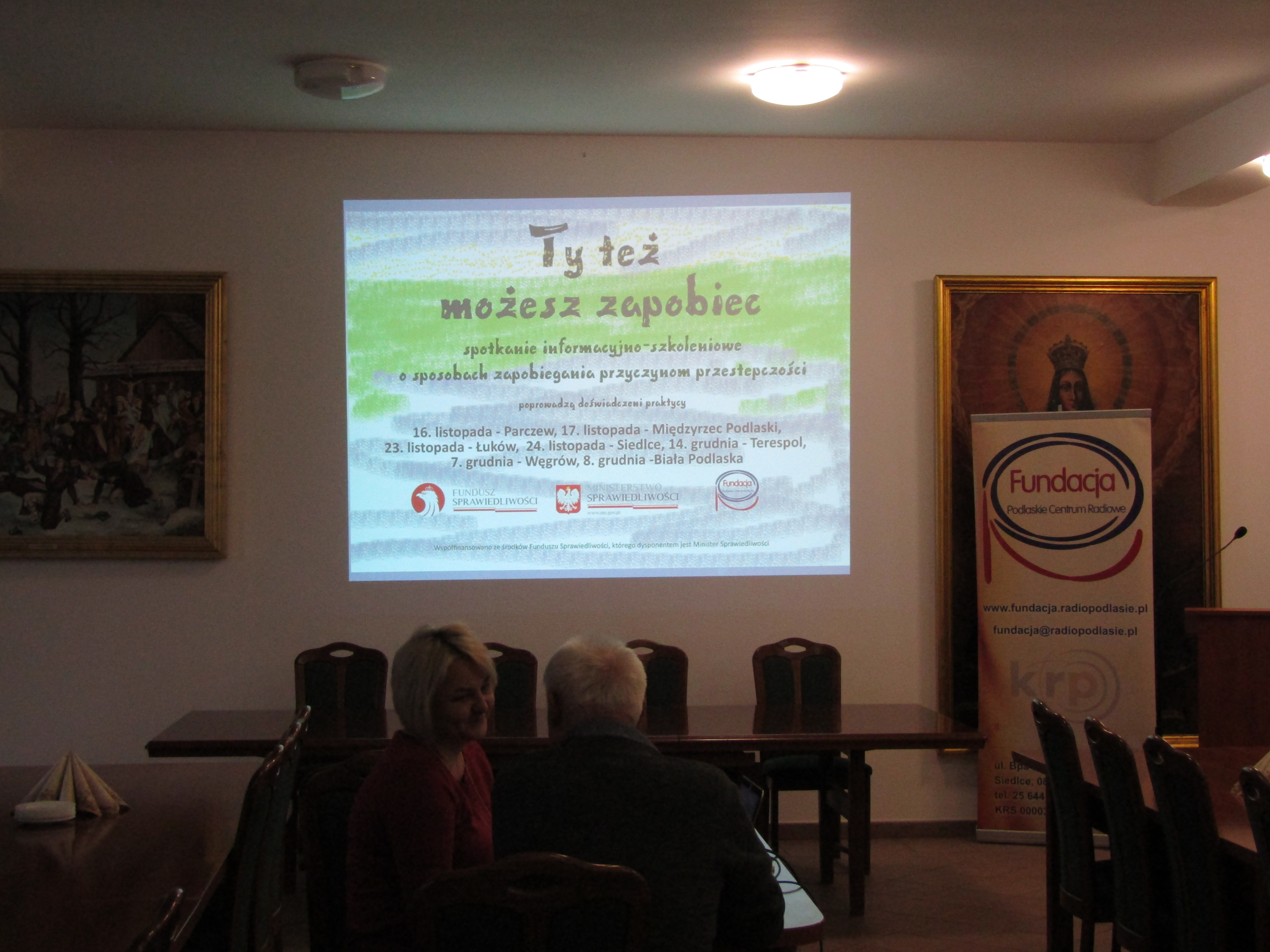 Spotkanie informacyjno – szkoleniowe zostało przeprowadzone w ramach projektu „Unikajmy złych dróg”, realizowanego przez Fundację Podlaskie Centrum Radiowe. Projekt jest współfinansowany ze środków Funduszu Sprawiedliwości, którego dysponentem jest Minister Sprawiedliwości.