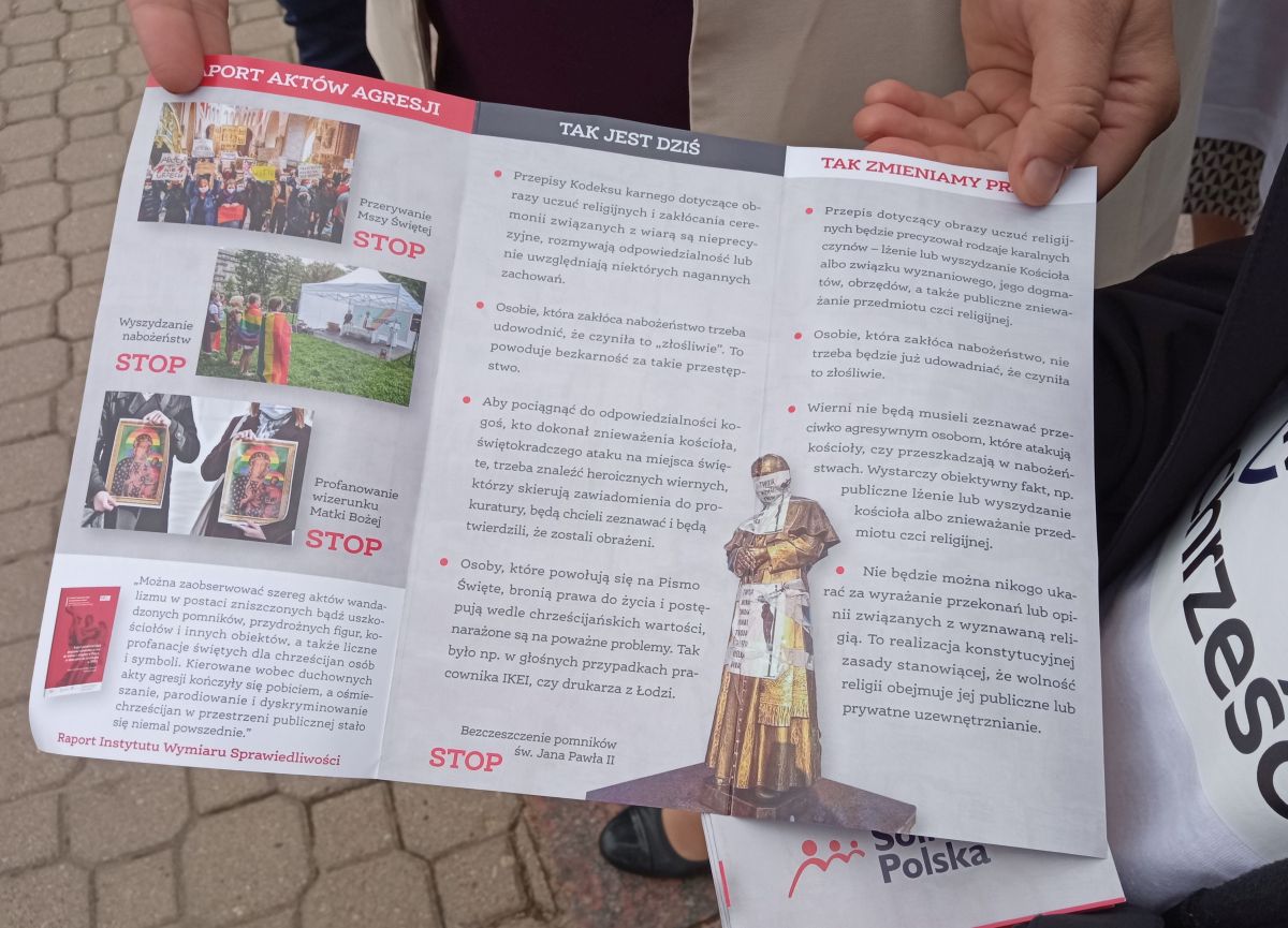 – Proponujemy zmianę artykułów 195 i 196 kodeksu karnego. W tym pierwszym chodzi o likwidację przesłanki w postaci zamiaru złośliwego sprawcy, aby zobiektywizować znamiona czynu przestępnego. W tym drugim chcemy wyeliminować przesłankę obrazy uczuć: aby nie badać, czy zostały naruszone, tylko odnieść się do naruszenia wolności i swobód związanych z wyznawaną religią. Dodatkowo wprowadzilibyśmy artykuł 27a, który zagwarantuje wolność poglądów religijnych (oczywiście bez naruszania wolności innych osób), byśmy nie byli karani za ich wyrażanie – uzupełnia Łukasz Romański, prawnik, działacz Solidarnej Polski.