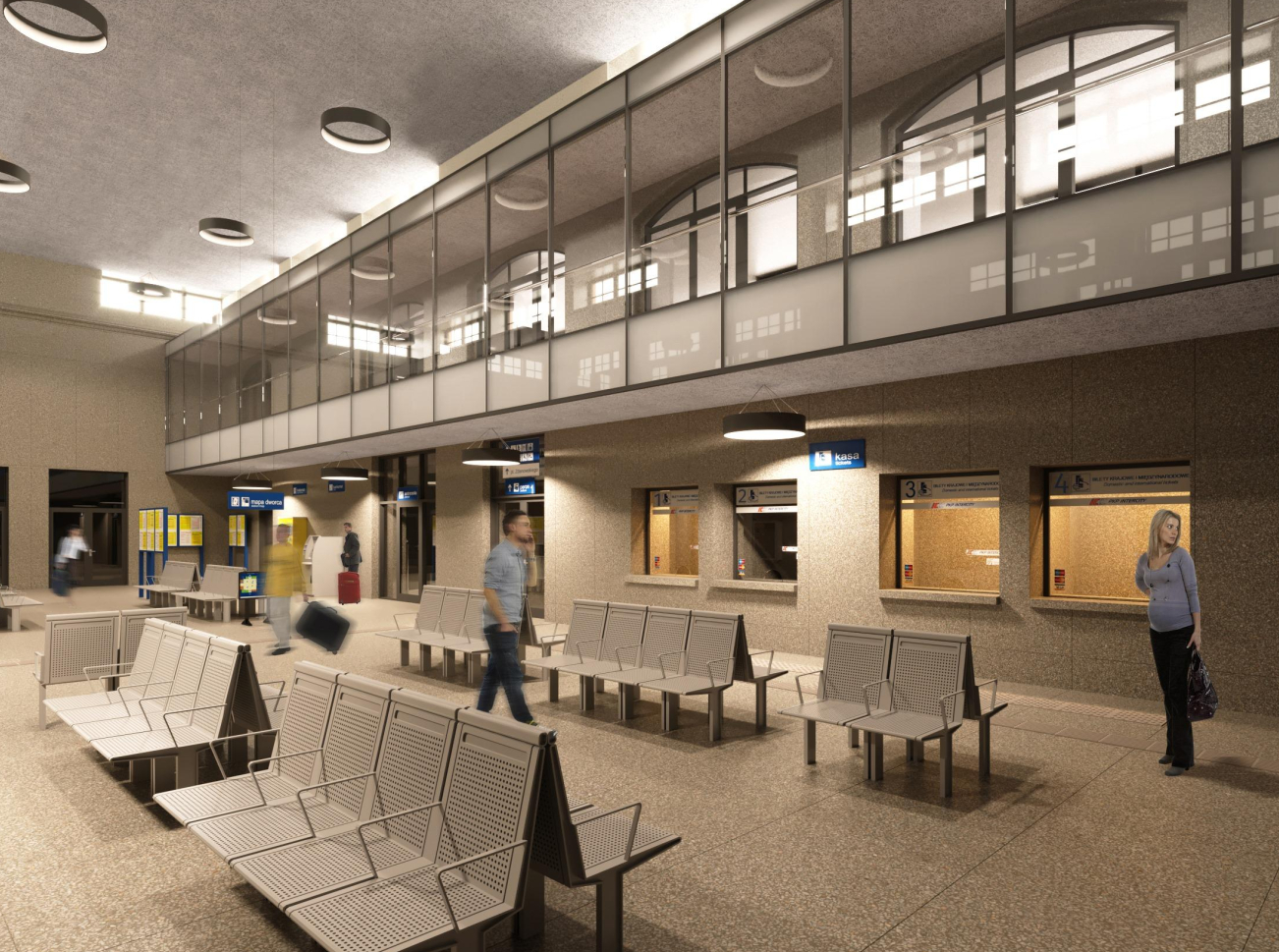 Wnętrze dworca też przejdzie zmiany. Hol i poczekalnia zostaną wyposażone w ławki, gabloty z rozkładami jazdy, elektroniczne tablice przyjazdów i odjazdów pociągów. Ma powstać też nowy system informacji głosowej. Na piętrze mają zostać również utworzone nowe toalety, kasy biletowe oraz lokale handlowo – usługowe.