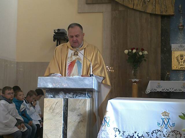 Eucharystię celebrował proboszcz parafii Manie ks. Sylwester Galach.  kapłan   dokonał  też poświęcenia sztandarów Szkoły Podstawowej i Gimnazjum w Rogoźnicy.