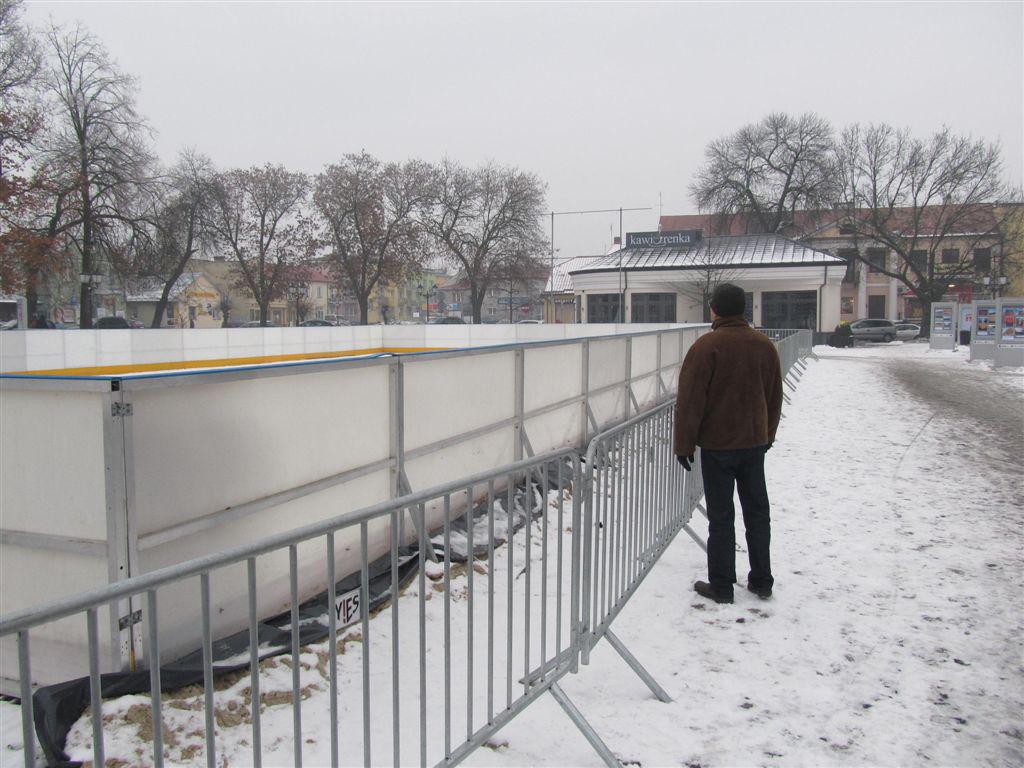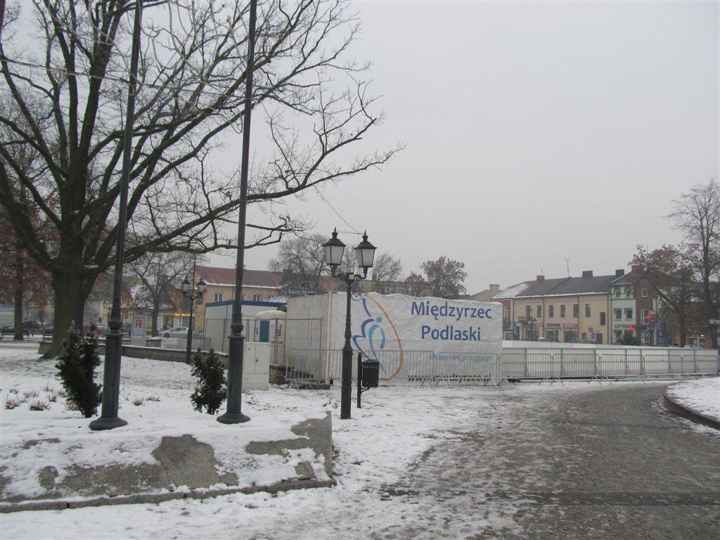 Trwają ostatnie przygotowania do uruchomienia sztucznego lodowiska w Międzyrzecu Podlaskim. Sztuczne lodowisko, podobnie jak w latach ubiegłych, znajduje się w centrum miasta na Placu Jana Pawła II. Zostanie uruchomione prawdopodobnie we wtorek 16 grudnia.