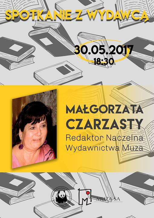 Pierwszym gościem biblioteki będzie Małgorzata Czarzasty, Redaktor Naczelna Wydawnictwa Muza. Spotkanie rozpocznie się o godz. 18:30.