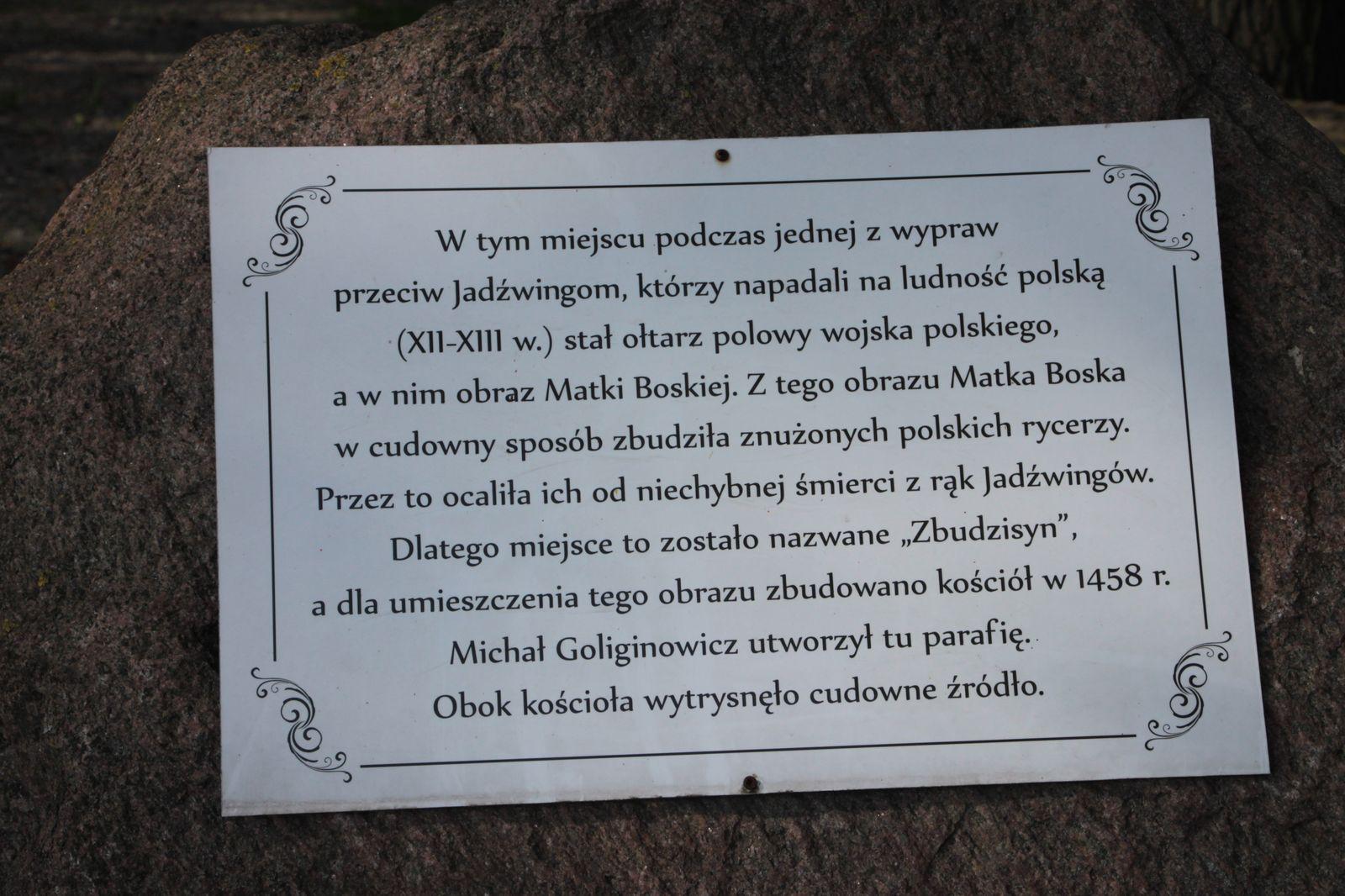Wg. miejscowej tradycji w XII wieku obóz żołnierzy polskich został cudownie ocalony przez Matkę Boską przed napadem Jadźwingów. Zostali oni zbudzeni ze snu przez nadzwyczajny blask bijący od wizerunku Madonny z Dzieciątkiem Jezus. Od cudu obudzenia żołnierzy wywodzi się nazwa miejscowości. Najpierw nazywała się "Zbudzieszyn", później Budziszyn i następnie Budzieszyn.