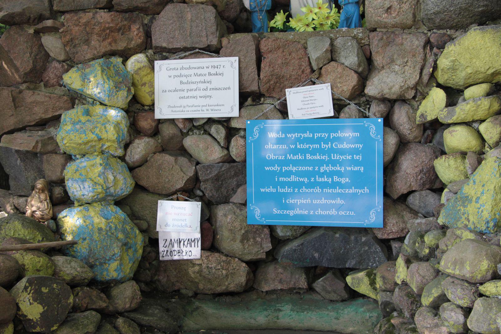 Jako wyraz wdzięczności okolicznych mieszkańców za ocalenie od zniszczeń faszystowskich, wybudowali oni grotę z figurą Matki Bożej Budzieszyńskiej. Pracami kierował ks. Wiktor Sopyła, więzień obozów hitlerowskich. Dał w ten sposób dowód wdzięczności za przeżycie w obozie.