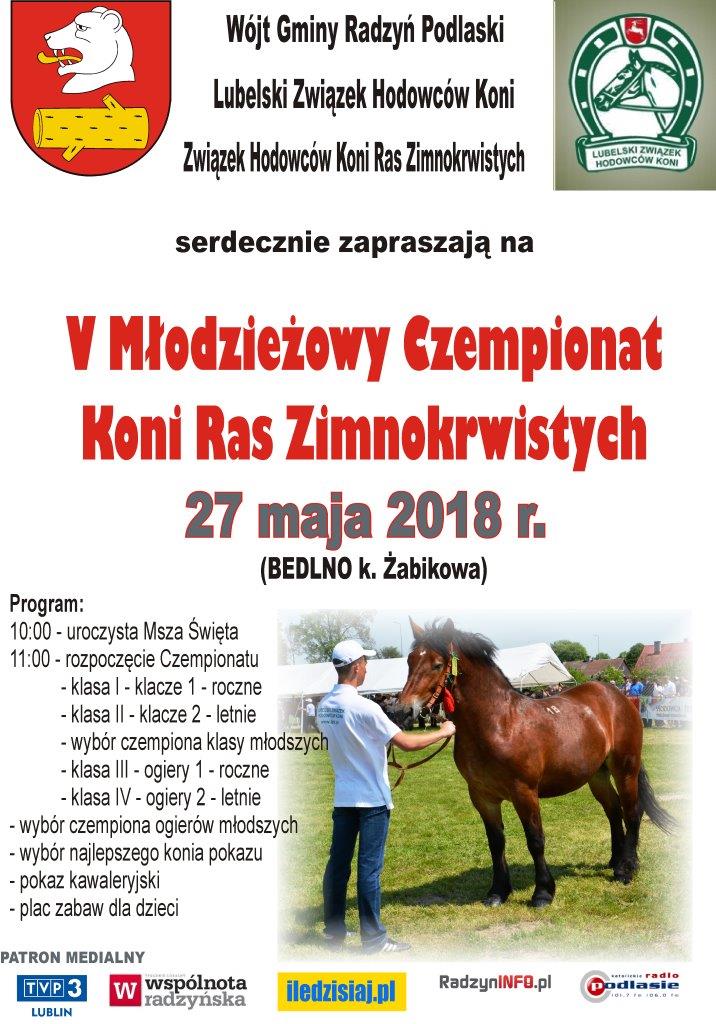 W niedzielę, 27 maja w Bedlnie koło Żabikowa odbędzie się V Młodzieżowy Czempionat Koni Ras Zimnokrwistych odbędzie się w niedzielę 21 maja w Bedlnie k. Żabikowa.
