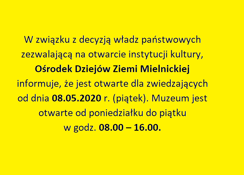 Ośrodek Dziejów Ziemi Mielnickiej – Muzeum w Mielniku (ODZM) wznawia działalność. Muzeum jest czynne od 8 maja. Placówka jest otwarta dla zwiedzających od poniedziałku do piątku w godzinach 8.00 – 16.00.