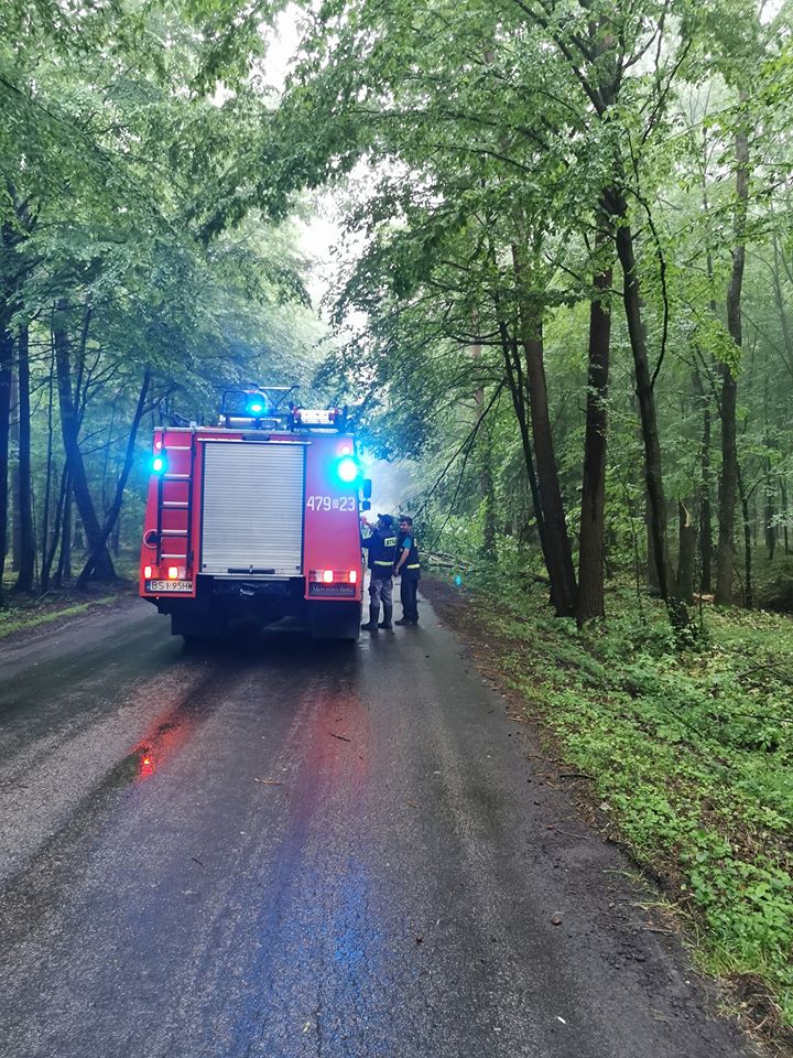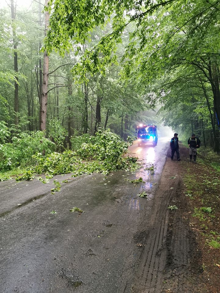 Foto: OSP Koryciny – usuwanie wiatrołomu w okolicach wsi Siemiony; OSP Dołubowo – usuwanie skutków burzy na trasie Dołubiwo - Zaminowo