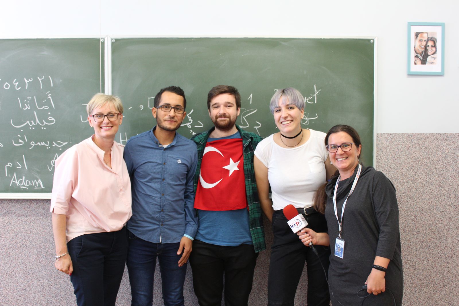 Laura z Hiszpanii, Adam z Algierii i Samet z Turcji, troje studentów gościło w Siemiatyczach w tutejszym LO w ramach projektu PEACE. Prowadzili lekcje angielskiego i opowiadali o swoich krajach. Każdy miał swój pomysł na prowadzenie lekcji, na konfrontacje języka i pokazanie swojego kraju i jego kultury. Laura, najbardziej energiczna, lekcje zaczynała od nauki tańca. Adam robił furorę wśród uczniów ucząc ich arabskiego alfabetu, a Samet nie rozstawał się z turecką flagą i rozwieszał ją zaraz po wejściu do klasy. Mówili o kulturze, mieli przygotowane prezentacje, muzykę, stroje. A uczniowie arcyciekawi wszystkiego, niemal każdy chciał sprawdzić swój angielski, przetestować, czy ktoś go zrozumie, czy się dogadają. I zainteresowanie to nie kończyło się wraz z dzwonkiem, dyskusje trwały i na przerwie i po lekcjach. Trzeba tu zaznaczyć, że studenci z zagranicy w czasie pobytu w Siemiatyczach mieszkali w domach uczniów. Poza tym po lekcjach codziennie organizowano wycieczki po okolicy, było ognisko integracyjne, więc był to bardzo wyjątkowy czas dla uczniów, nauczycieli i całej szkoły.