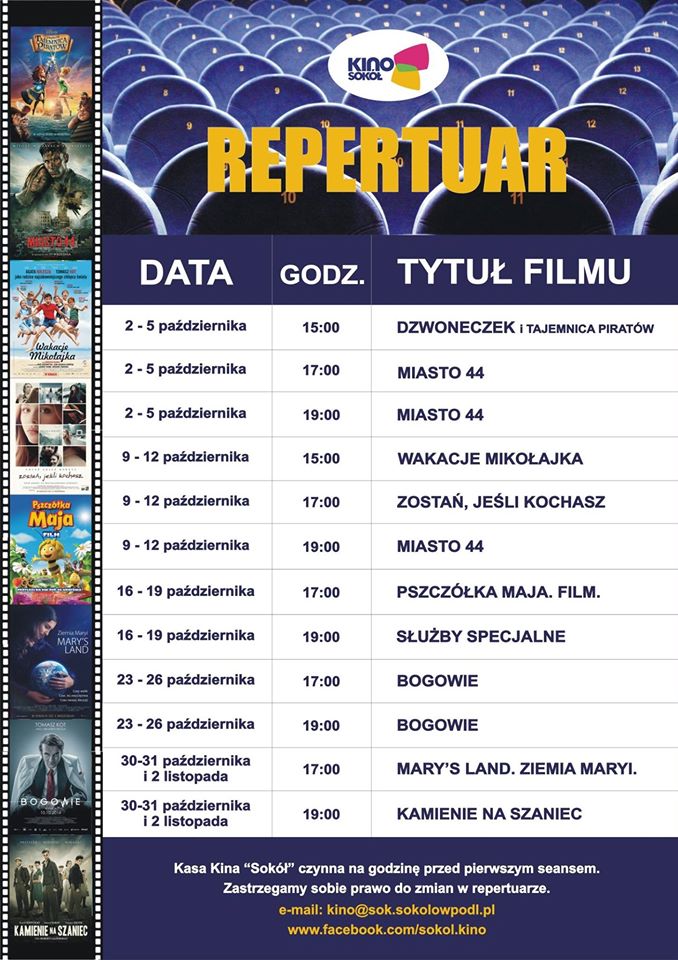 Repertuar kina w Sokołowie Podl. /PAŹDZIERNIK/