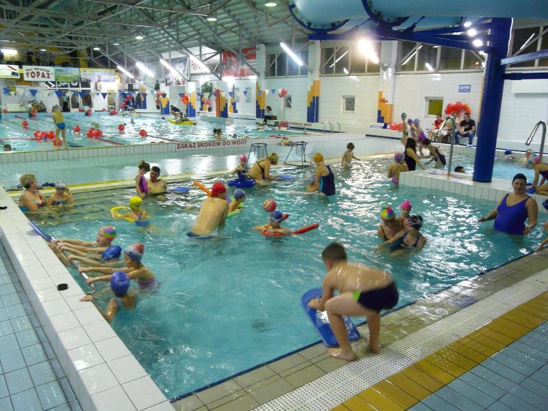 Impreza adresowana była do dzieci w wieku od 3 do 9 lat.  Uczestnicy mieli do dyspozycji duży i mały basen, na których korzystali z koszy, bramek, piłek, krążków, „makaronów”, a nawet specjalistycznego kajaka. Powodzeniem cieszyła się też zjeżdżalnia. Część rodziców zdecydowała się towarzyszyć swoim pociechom w wodzie, większość jednak obserwowała je pozostając na brzegu.