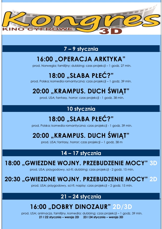 Repertuar Kina KONGRES w Węgrowie /STYCZEŃ/