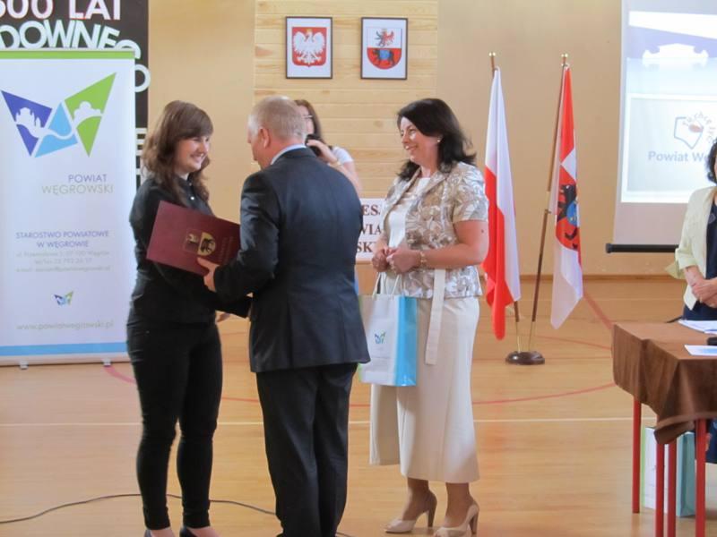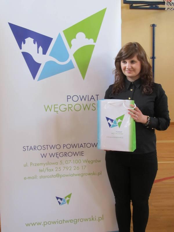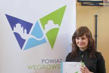 Na konkurs wpłynęły 42 projekty, które oceniała komisja konkursowa w składzie: wicestarosta Ewa Besztak, sekretarz powiatu Marzena Gromek, dyrektor MBP w Węgrowie Małgorzata Piórkowska, przewodnicząca Komisji Oświaty Rady Powiatu Węgrowskiego Małgorzata Zyśk oraz dyrektor Muzeum Zbrojowni na Zamku w Liwie Roman Postek. Zwyciężyło logo zaprojektowane przez Kamilę Borowską z Bielska Podlaskiego. Kamila jest studentką architektury urbanistyki na Politechnice Białostockiej, jej hobby to grafika. Choć nie jest bezpośrednio związana z powiatem węgrowskim to jak powiedziała ma nadzieję, iż zaprojektowane przez nią logo będzie jak najlepiej służyć ziemi węgrowskiej. A jak wygląda stworzony projekt? Jak wyjaśniła autorka logo tworzą trzy trójkąty ułożone w literę „W”, charakterystyczną dla powiatu węgrowskiego. Na każdym trójkącie widnieje inny symbol – jest tu zarys Bazyliki Mniejszej w Węgrowie, meandry Liwca i zarys krajobrazów otaczających powiat. Kolory jakie dominują w znaku graficznym to chaber, błękit i zieleń i mają one symbolizować świeżość i otwartość powiatu oraz budzić pozytywne skojarzenia. Wyznacznikiem Kamili było stworzenie znaku charakterystycznego dla powiatu, czyli litery „W”. Autorka chciała żeby logo miało charakter współczesny stąd też dążenie do jak najbardziej zgeometryzowanej formy.