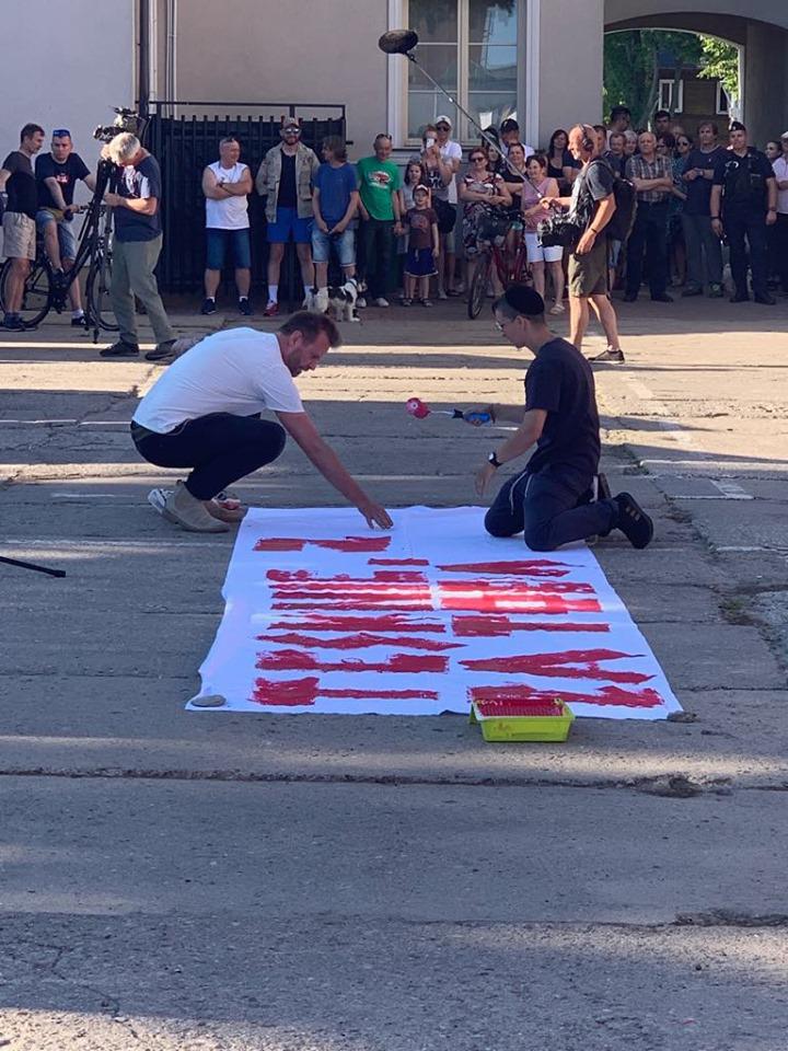 Spotkanie w Węgrowie rozpoczęło się od rozmowy z jednym z najstarszych mieszkańców miasta, który opowiedział o tym jak wyglądał Węgrów w czasach kiedy mieszkała w nim ludność żydowska. Następnie artysta chciał, aby hasło o tęsknocie za węgrowskimi Żydami napisali sami mieszkańcy. Chętnych nie było. Zamiast na murze, Betlejewski rozpoczął więc sam pisanie na płycie targowiska, jednak po interwencji węgrowskich policjantów zdecydowano się na kawałek materiału, który później powieszono między drzewami na Rynku Mariackim w Węgrowie.