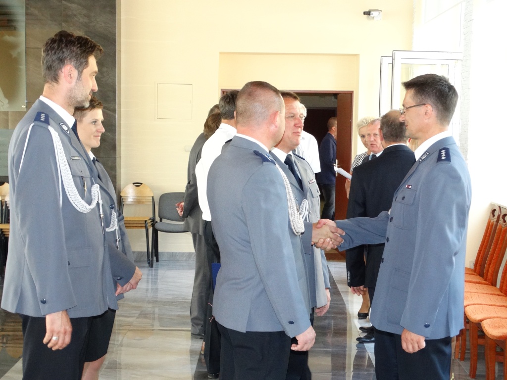 Insp. Rafał Korczak w obecności przedstawicieli władz samorządowych, prokuratury, instytucji współpracujących z węgrowską Policją oraz policjantów i pracowników cywilnych KPP w Węgrowie, wręczył nadkom. Andrzejowi Dziewulskiemu rozkaz o powierzeniu obowiązków na stanowisku Zastępcy Komendanta  Powiatowego Policji w Węgrowie.