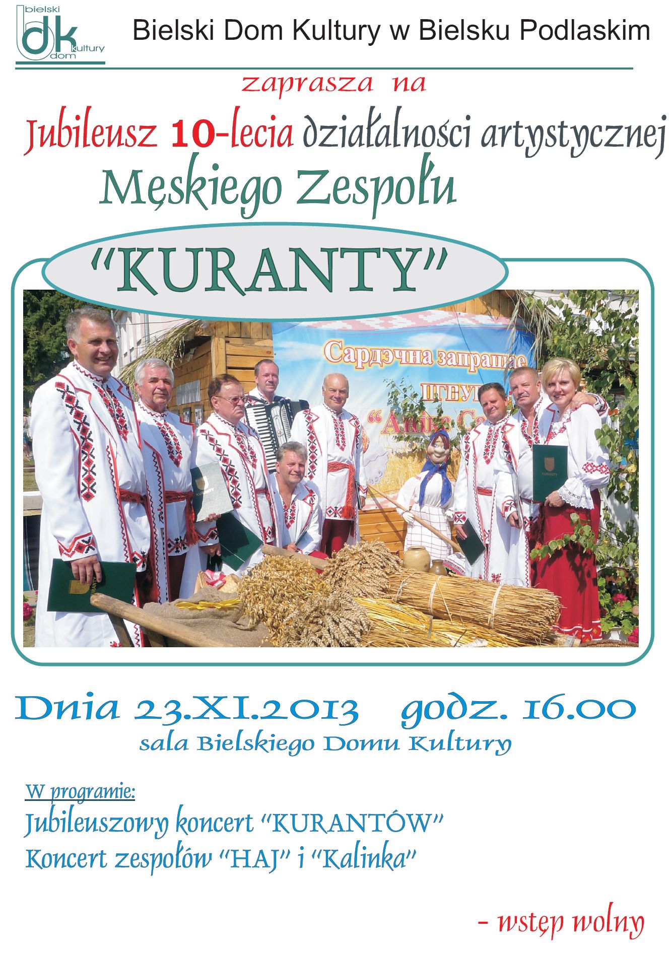 23 listopada w Bielskim Domu Kultury odbędzie się jubileusz 10 – lecia działalności artystycznej męskiego zespołu Kuranty.
