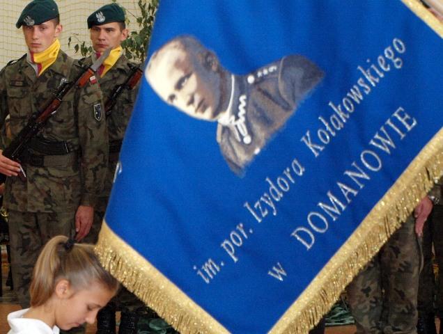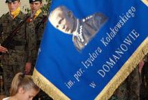 Podczas wizytacji, w rocznicę poświęcenia sztandaru, placówka szkolna w Domanowie, obchodzi święto swego patrona. Jest nim bohater wojny obronnej w 1939 roku, por. Izydor Kołakowski, żołnierz 9 Pułku Strzelców Konnych im. Kazimierza Pułaskiego, który poległ wraz z innymi w bitwie pod Domanowem stoczonej 13 września tego roku.