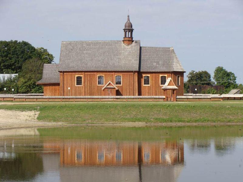 Główną część Martyrium Pratulińskiego stanowi przepiękny kościół z 1747 r., kolatorstwa księdza Szymona Dziewulskiego. Budynek został przeniesiony ze Stanina w diecezji siedleckiej i usytuowany w miejscu oraz zrekonstruowany na wzór dawnego kościółka unickiego, przed którym 24 stycznia 1874 r. wojsko rosyjskie otworzyło ogień do modlących się parafian. Jednym z ważniejszych elementów Martyrium Pratulińskiego będą zachowane oryginalne fundamenty pierwotnej świątyni. Fundamenty będą udostępnione do obejrzenia wewnątrz kościółka.![]() |