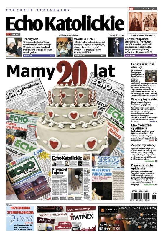 Tygodnik Regionalny „Echo Katolickie” obchodzi 20-lecie swojego istnienia. 24 lutego 1991 r. ukazał się pierwszy numer „Echa”. Wtedy było to „Nowe Echo Podlasia”.