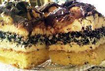 • biszkopt: białka ubić z cukrem i cuk. wanilin, dodać żółtka, do ubitych jaj przesiać obie mąki z proszkiem i lekko wymieszać, na koniec dodać olej i wymieszać wlać na blaszkę o wymiarach 26x36, piec ok. 40 min w temp. 160 st.
