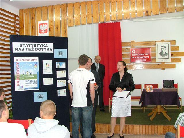 25 maja odbyło się podsumowanie akcji edukacyjno –informacyjnej na temat Narodowego Spisu Powszechnego. Udział w nim wzięli m.in. zastępca dyrektora Głównego Urzędu Statystycznego w Lublinie Andrzej Matacz, Magdalena Rosołowska specjalista do spraw promocji GUS Lublin, dyrektor szkoły Mirosław Antonow, koordynator szkolny Bożena Gryglicka oraz uczniowie klas pierwszych technikum. Zastępca dyrektora Urzędu Statystycznego w Lublinie pan Andrzej Matacz wręczył notebooka uczniowi klasy pierwszej technikum mechanicznego Józefowi Gmurkowskiemu. Kolejne nagrody - odtwarzacze mp4, otrzymali: Bartłomiej Sadło (1 TI), Dorota Koślacz (1TH), Damian Pietrzak ( 1 TH ), Radosław Zakrzewski ( 1 TM ), Piotr Zalewski (1 TM ), Kamil Przybysz (1 TM ) oraz Piotr Gryczka ( 1TM ).