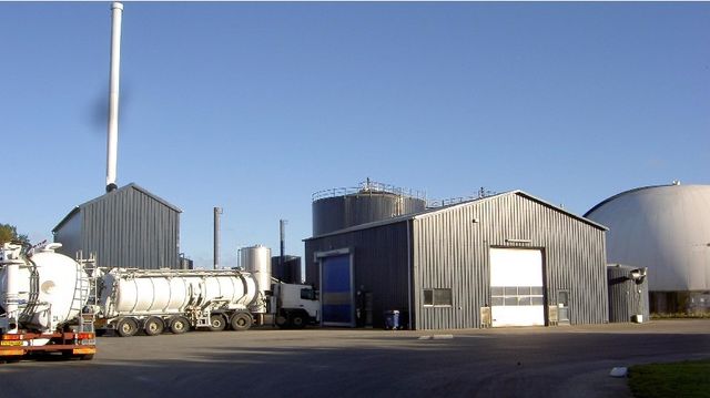 Fotografia przedstawia przychodzący transport substratów przed wjazdem do hali przyjęć. Z chwilą wjazdu pojazdu do hali drzwi zostają automatycznie zamknięte, wytwarzane jest podciśnienie, a powietrze z hali zostaje skierowane do filtrów odoru. Przed wyjazdem z hali każdy pojazd jest dokładnie myty, a woda z mycia jest zawracana do procesu. Czyste samochody dostawcze opuszczają budynek bramą wyjazdową z drugiej strony budynku.