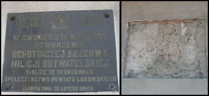 Po 46 latach ze ściany budynku, w którym dziś mieści się m.in. szkoła muzyczna i Urząd Stanu Cywilnego w Łukowie, zniknęła tablica ufundowana w 20 rocznicę utworzenia Obywatelskiej Rezerwy Milicji Obywatelskiej. Tablicę zawieszoną dokładnie 20 lutego 1966 roku, zdjęto 19 czerwca 2012.