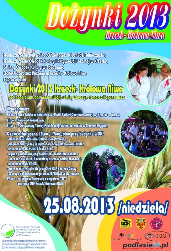 Dożynki 2013 Krzesk - Królowa Niwa25 sierpnia odbędą się Dożynki 2013 Krzesk - Królowa Niwa pod honorowym patronatem Wójta Gminy Zbuczyn - Tomasza Hapunowicza.